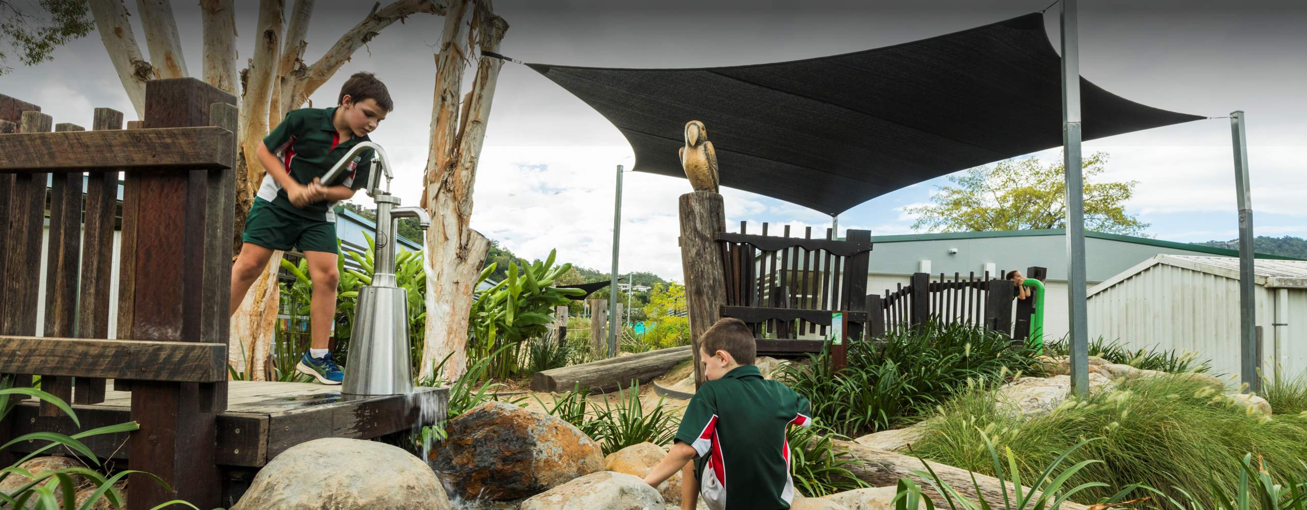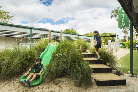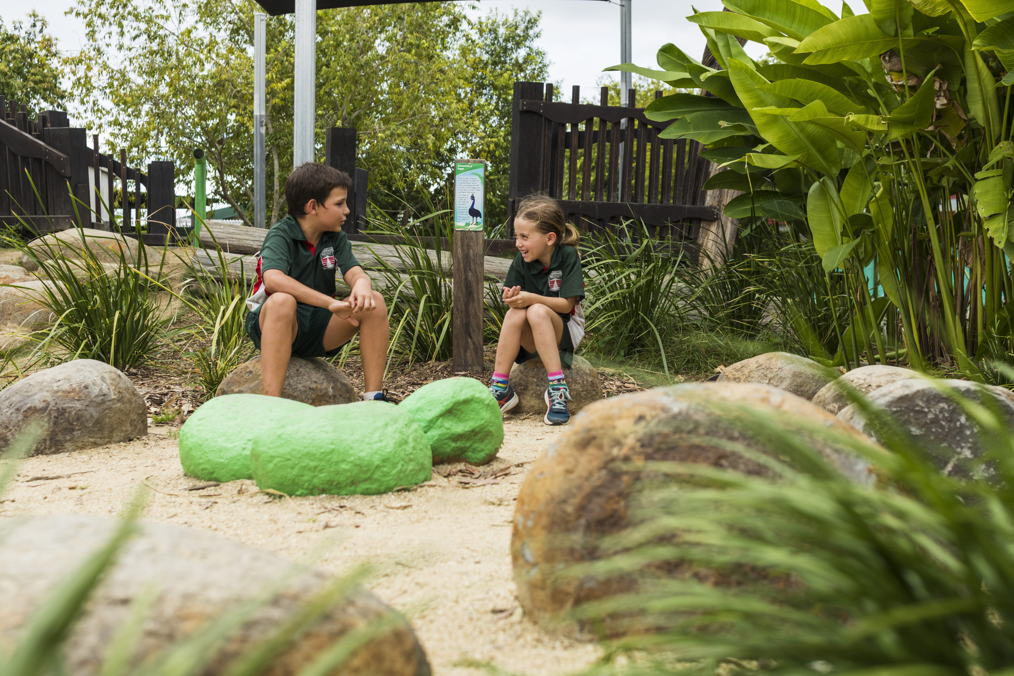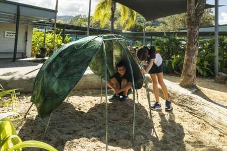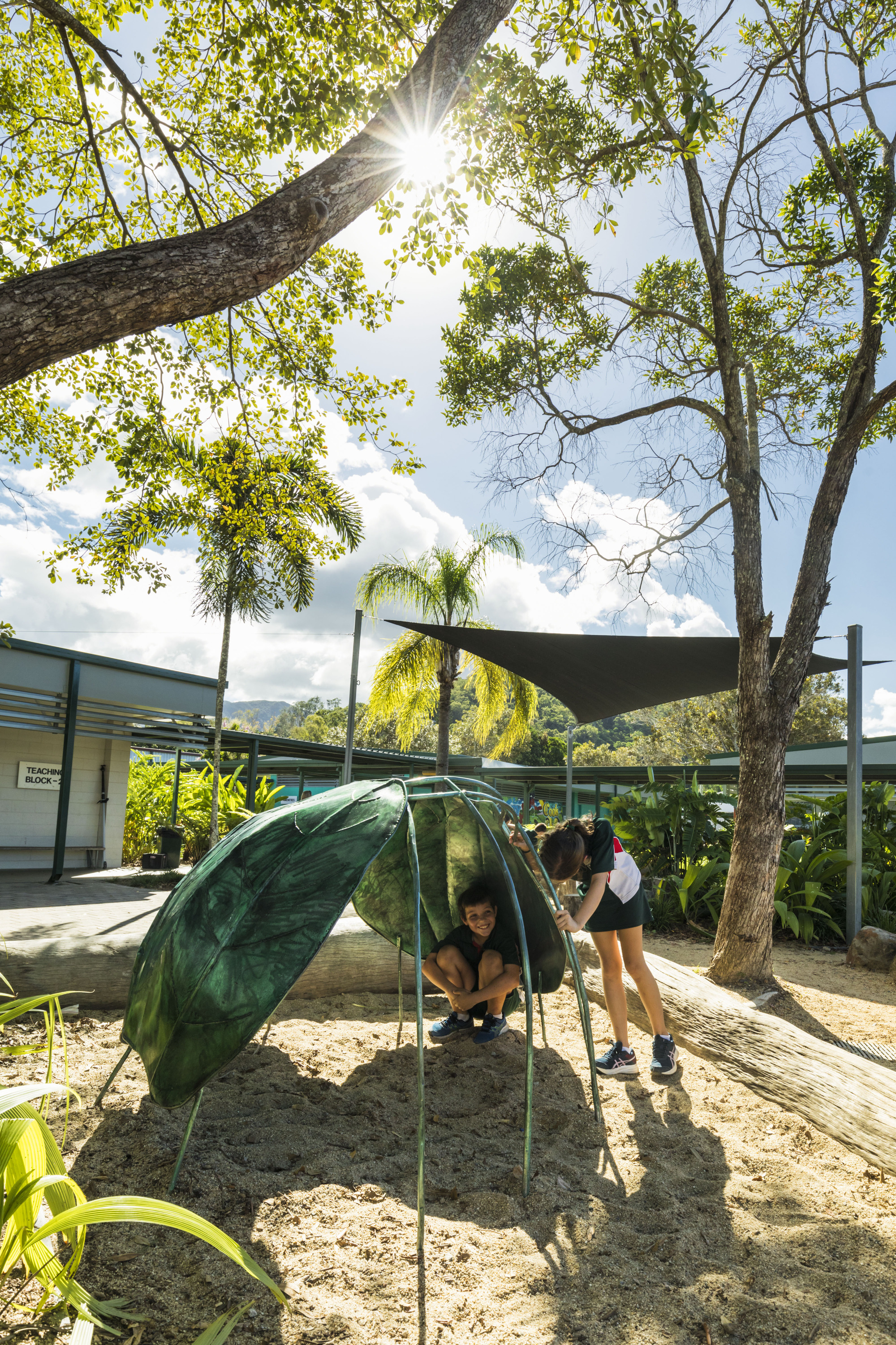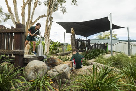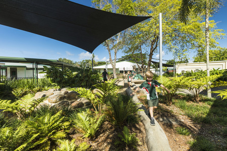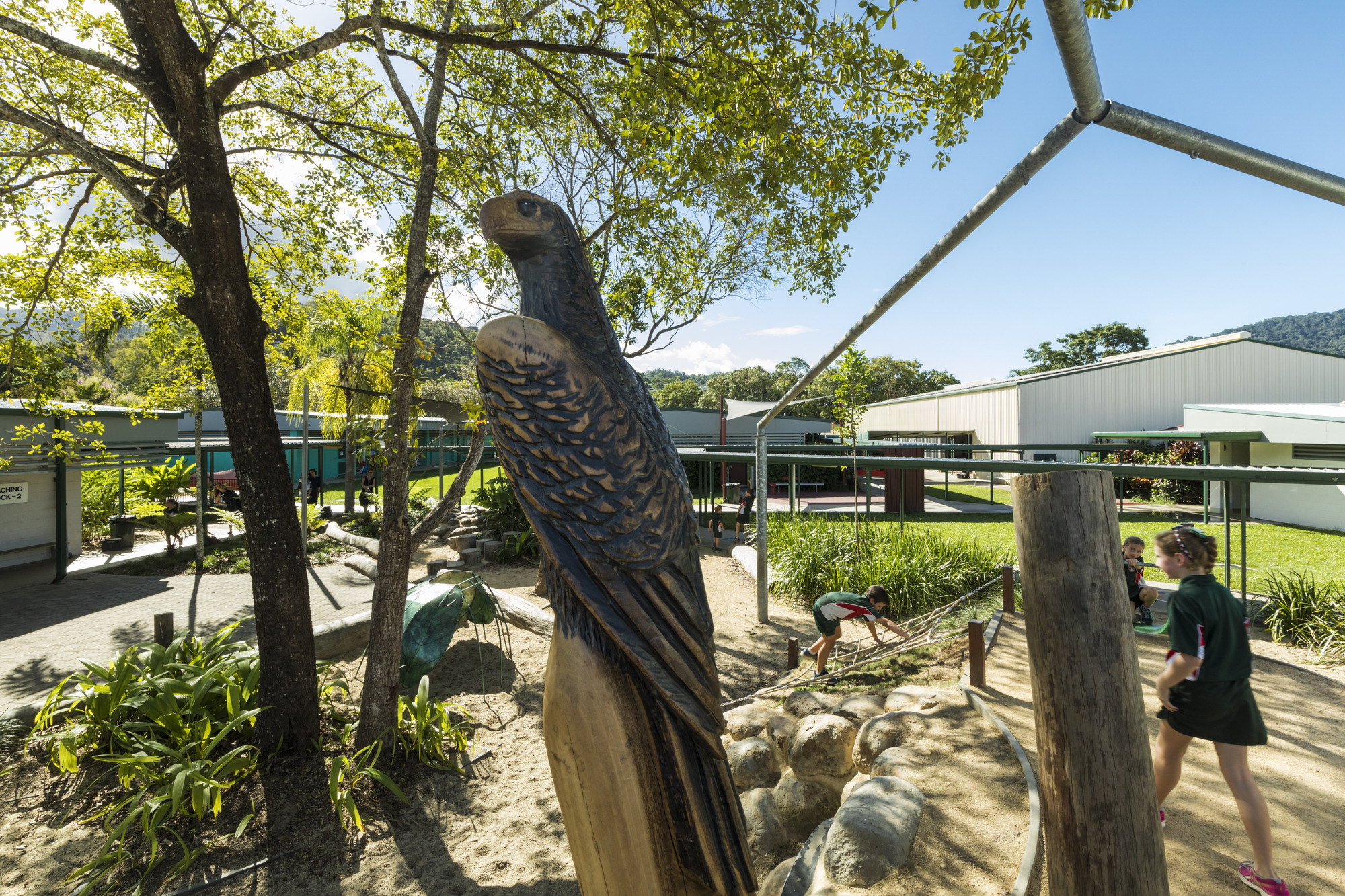 The Little Roo’s Playground builds on a short story created by the Whitfield State School teachers to assist children transition from preschool into prep. The narrative is brought to life with the creation of a series of play experiences featuring little Roo’s new friends, each character based on animals found in North Queensland. The outcome functions beyond the basic purpose of a playground, providing prompts for lessons on the natural environment, relationships, resilience and fostering environmental stewardship in later life.